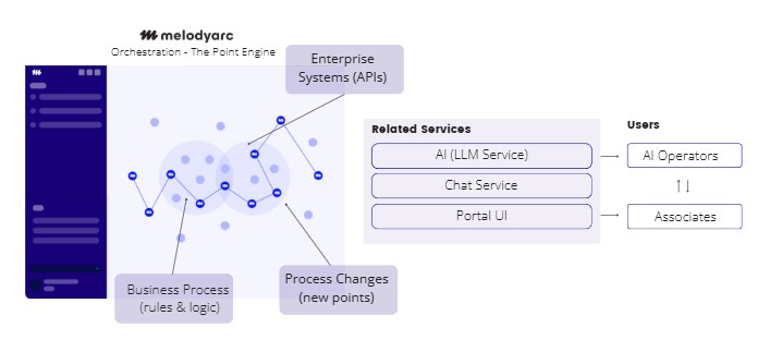 Unlike linear workflows, MelodyArc uses its proprietary Point Engine to route work through a dynamic decision graph in real time. Each task is handled with the right combination of rules, automation, AI, existing enterprise agents, and human input. Every step is recorded to create durable workflow context, giving teams the visibility needed to improve accuracy, speed, and decision-making over time.